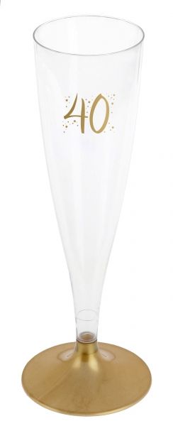 Muoviset laadukkaat uudelleen käytettävät kuohuviinilasit joissa kultainen jalka ja kultainen 40 printti. Pakkaus sisältää 6kpl 14cl laseja.