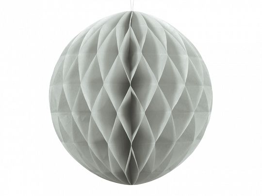 Harmaa kennopaperipallo, halkaisija 40cm. Näillä upeilla paperikoristeilla somistat juhlatilan helposti näyttäväksi. Tilaa useita erivärejä ja kokoja. Laita roikkumaan katosta, heitä pöydälle pöytäkoristeeksi tai vaikka lattialle somisteeksi. Näyttävät ja tuovat syvyyttä esim. kuvausseinälle laitettuna lattialle siten että pallot edessä, kuvattavat niiden takana ja tausta perimmäisenä.